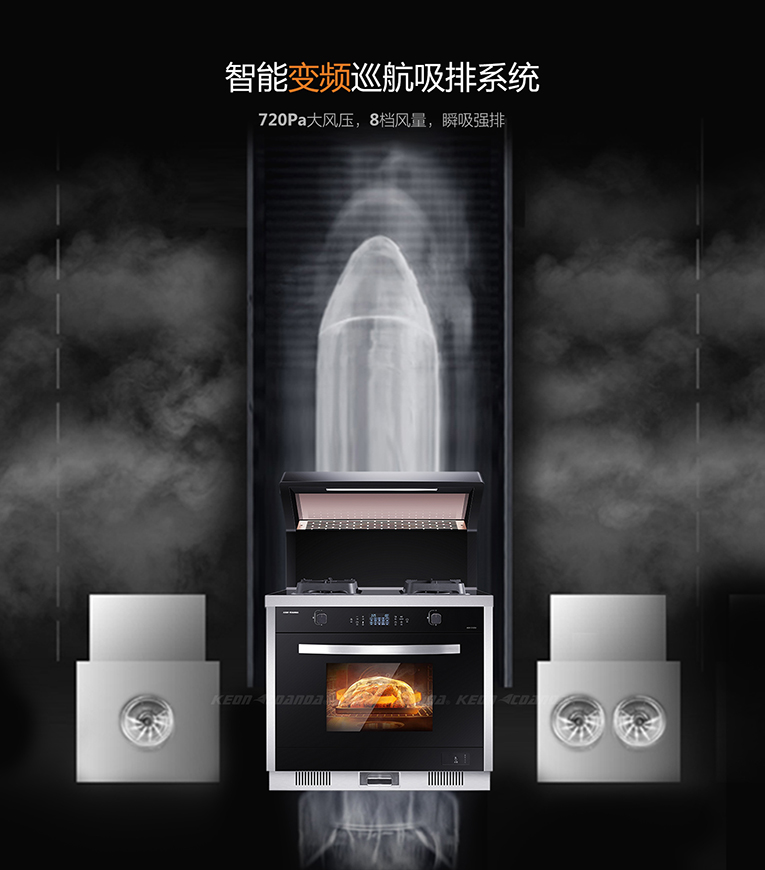另外,科恩D125X變頻蒸烤消一體集成灶采用62L食品級(jí)304不銹鋼內(nèi)膽大容量蒸烤箱設(shè)計(jì),噴氣式4D立體蒸加底部“薩萊米”進(jìn)口陶瓷加熱盤(pán)讓食物受熱更加均勻,內(nèi)腔頂部包裹發(fā)熱絲,蒸制過(guò)程防止了蒸汽上升產(chǎn)生的冷凝水珠;烤箱模式采用智能恒溫烤箱,耐高溫抗氧化,表面不易沾油污,耐腐蝕耐高溫,頂部2組熱管4D烘烤,熱量均勻色澤亮麗!