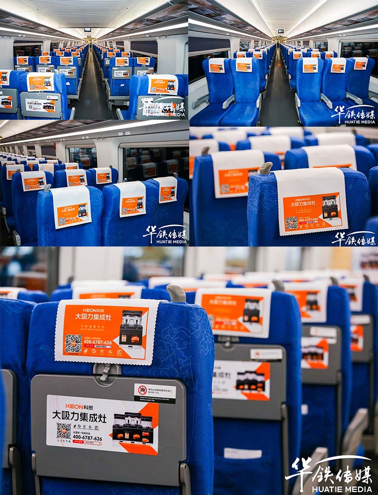 2021年7月,科恩集成灶強勢打響高鐵品牌戰役,全面布局高鐵傳播,為品牌推廣助力加碼,伴隨馳騁的中國高鐵品牌專列,“科恩號”足跡遍布全國,“樂享智慧烹飪”廚房生活理念走進千家萬戶!科恩集成灶高鐵列車充分利用各種常見媒體形式,外車身、頭片、座椅、桌貼、桌板、海報、列車廣播等都顯示了科恩品牌廣告,坐、立、行、視、聽,多元化媒體形式、全方位高頻次,都能感受到科恩品牌文化。