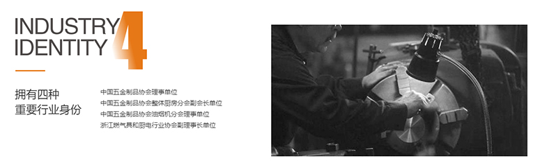 擁有行業中國五金制品協會理事單位、中國五金制品協會整體廚房分會副會長單位、中國五金制品協會油煙機分會理事單位、浙江燃氣具和廚電行業協會副理事長單位四種重要身份。