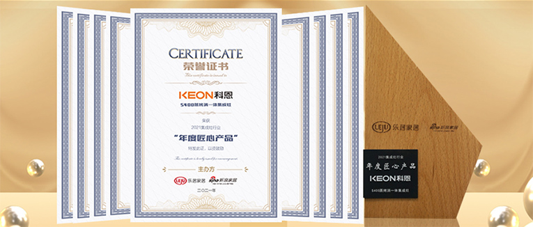 與此同時,科恩S400高端語音蒸烤消一體集成灶蒸烤消一體、智能語音控制、上下平整加熱等優勢被新浪家居評選為2021集成灶行業年度匠心產品”,也是對其創新技術的認可。
