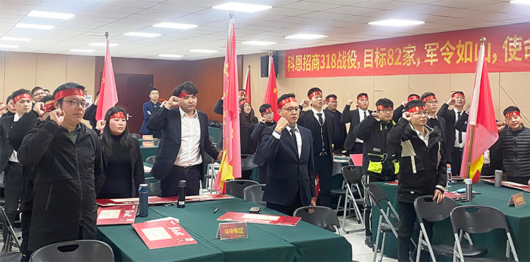 總指揮錢昌敏帶領公司各領導、各戰(zhàn)區(qū)作動員講話,并制定了本次招商峰會的戰(zhàn)略方向和執(zhí)行策略,提出作戰(zhàn)目標,希望每位科恩人能夠以百分百的狀態(tài)投入工作,以堅持不懈的精神砥礪前行。科恩集成灶在全國擁有近3000家專賣店,相信在大家的不懈奮斗下,將全力沖刺2022!