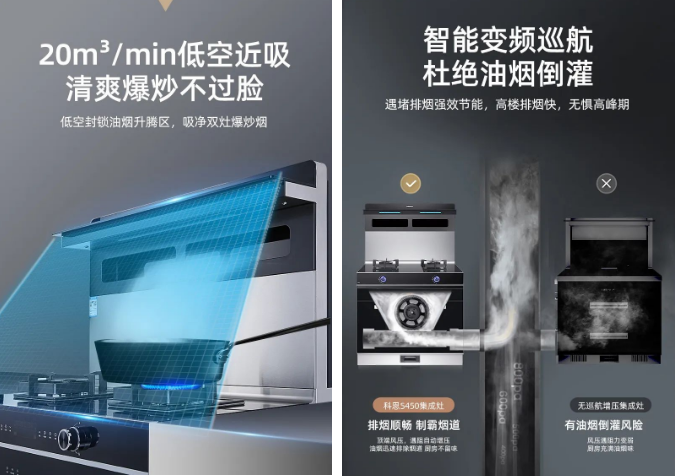 黏膩油煙是造成廚房高溫的罪魁禍?zhǔn)祝忾]廚房加上爐火的燃燒,油煙擴(kuò)散充斥著整個空間,又悶又熱,科恩S450以其低空近吸和20m3/min大吸力形成黃金攏煙區(qū),牢牢將油煙封鎖在擴(kuò)散前的升騰區(qū),吸煙距離更近,把油煙扼殺在萌芽狀態(tài),完美解決油煙難題,油煙不發(fā)散,廚房溫度自然不會高!S450搭載智能變頻巡航系統(tǒng),最大風(fēng)壓可達(dá)800Pa,高層以及做飯高峰期時,不再懼怕公共煙道油煙壓力,遇堵排煙強(qiáng)效節(jié)能,杜絕油煙倒灌,把油煙輕松排出室外,清新廚房空氣。