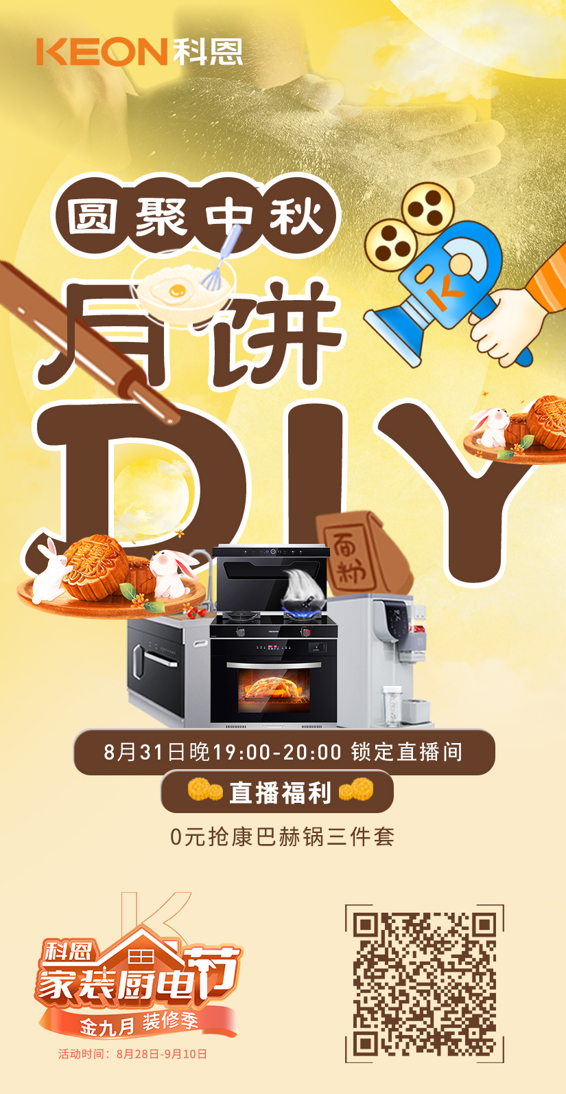 講真,吃久了外面買的月餅,總有那么一刻想要自己做來試試,而看到種種月餅DIY教程,呃……似乎難度……有點大!!!!于是!科恩集成灶就貼心的在科恩家裝廚電節(jié)活動期間安排了【圓聚中秋,月餅DIY】為主題的直播活動!手把手教你用科恩集成灶做高顏值的中秋月餅,而且據(jù)說直播現(xiàn)場還有0元搶康巴赫鍋三件套的壕氣福利!