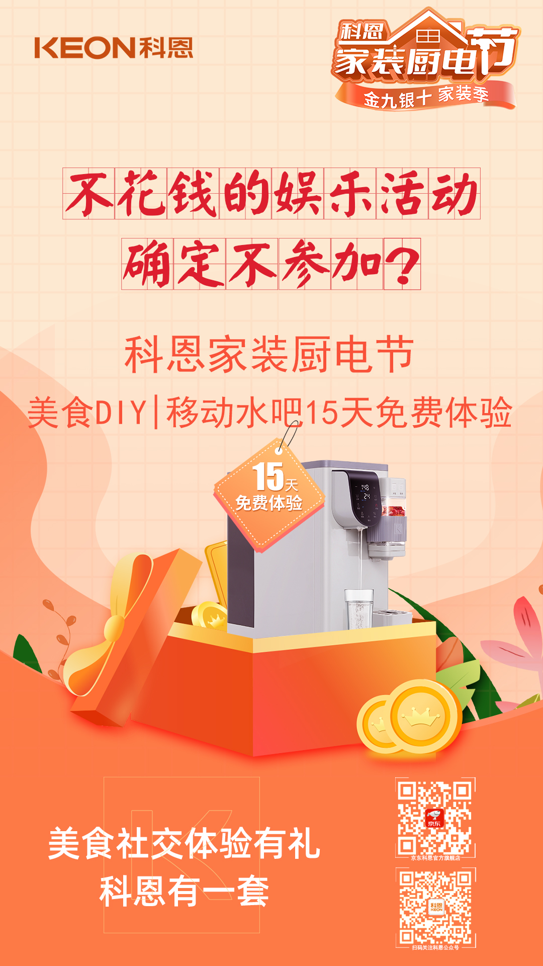 明天就是周末了,別只在家擺爛!可逛街費(fèi)錢,宅家費(fèi)電,有沒有什么不花錢又能carry全場(chǎng)的娛樂活動(dòng)?來科恩家裝廚電節(jié),場(chǎng)地、設(shè)備、機(jī)器早已準(zhǔn)備就緒,美食DIY,沉浸式體驗(yàn),共同制作美食,一起分享心得,還有15天免費(fèi)體驗(yàn)的移動(dòng)水吧帶回家,美食社交,體驗(yàn)有禮,確定不參加?