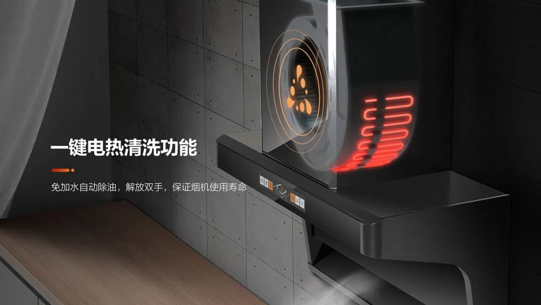 所謂“電加熱清洗”是利用電加熱高溫融化附著在蝸殼、風(fēng)輪及電機(jī)上的油污,在通過(guò)風(fēng)輪的轉(zhuǎn)動(dòng)將油污衰落從而完成煙機(jī)內(nèi)部清洗。