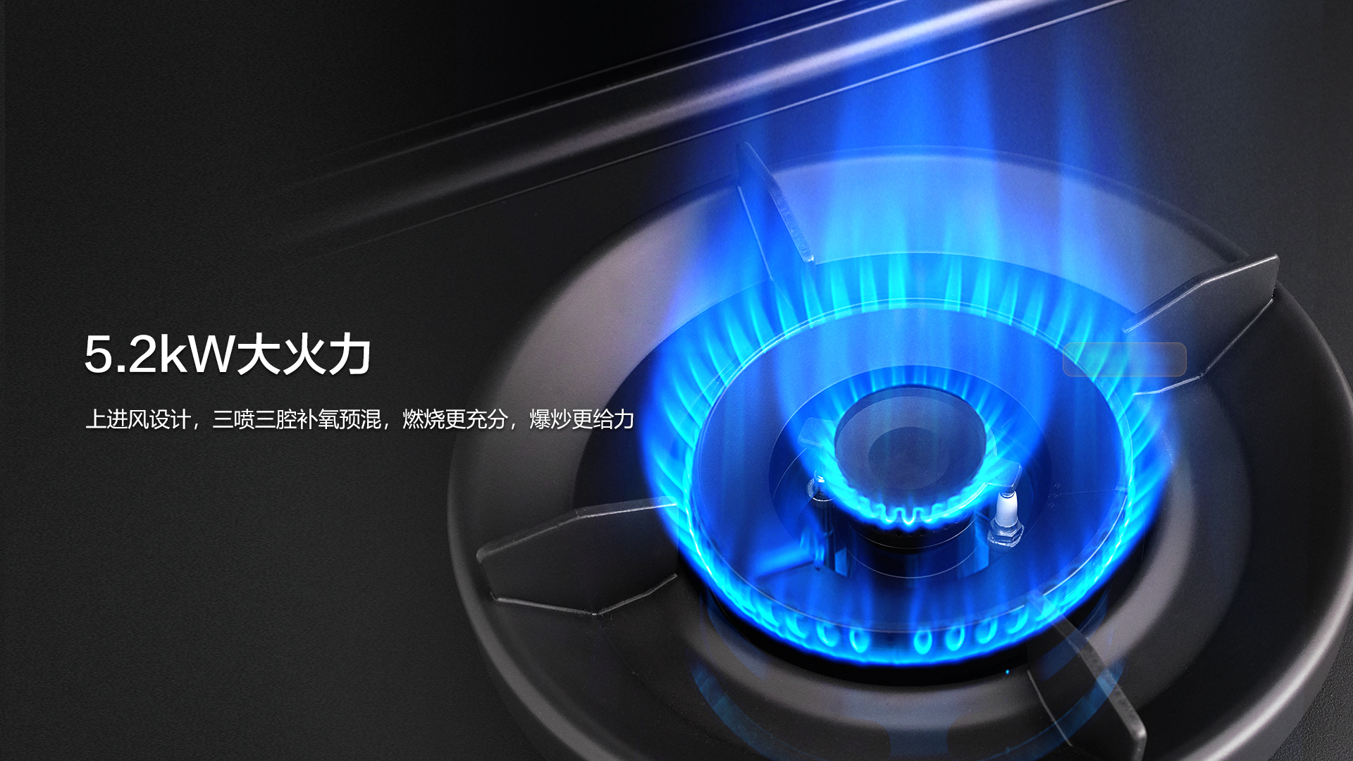 為什么飯店的炒菜特別好吃,火力很關鍵!Q1采用5.2KW大火力,真正凈藍猛火,讓爆炒更有味。