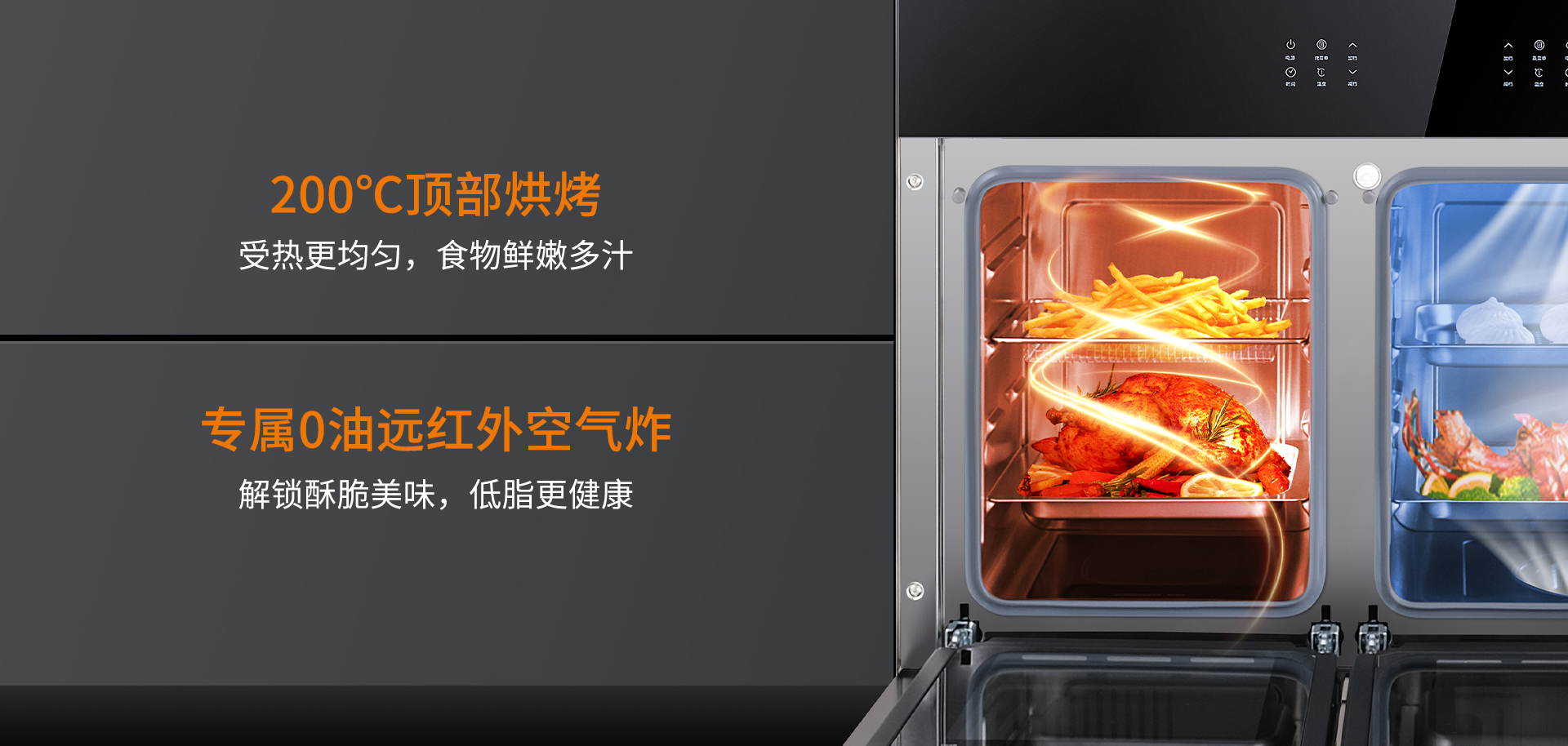 S450L搭載語音喚醒功能,只需開口就能控制集成灶,盡顯廚房黑科技。