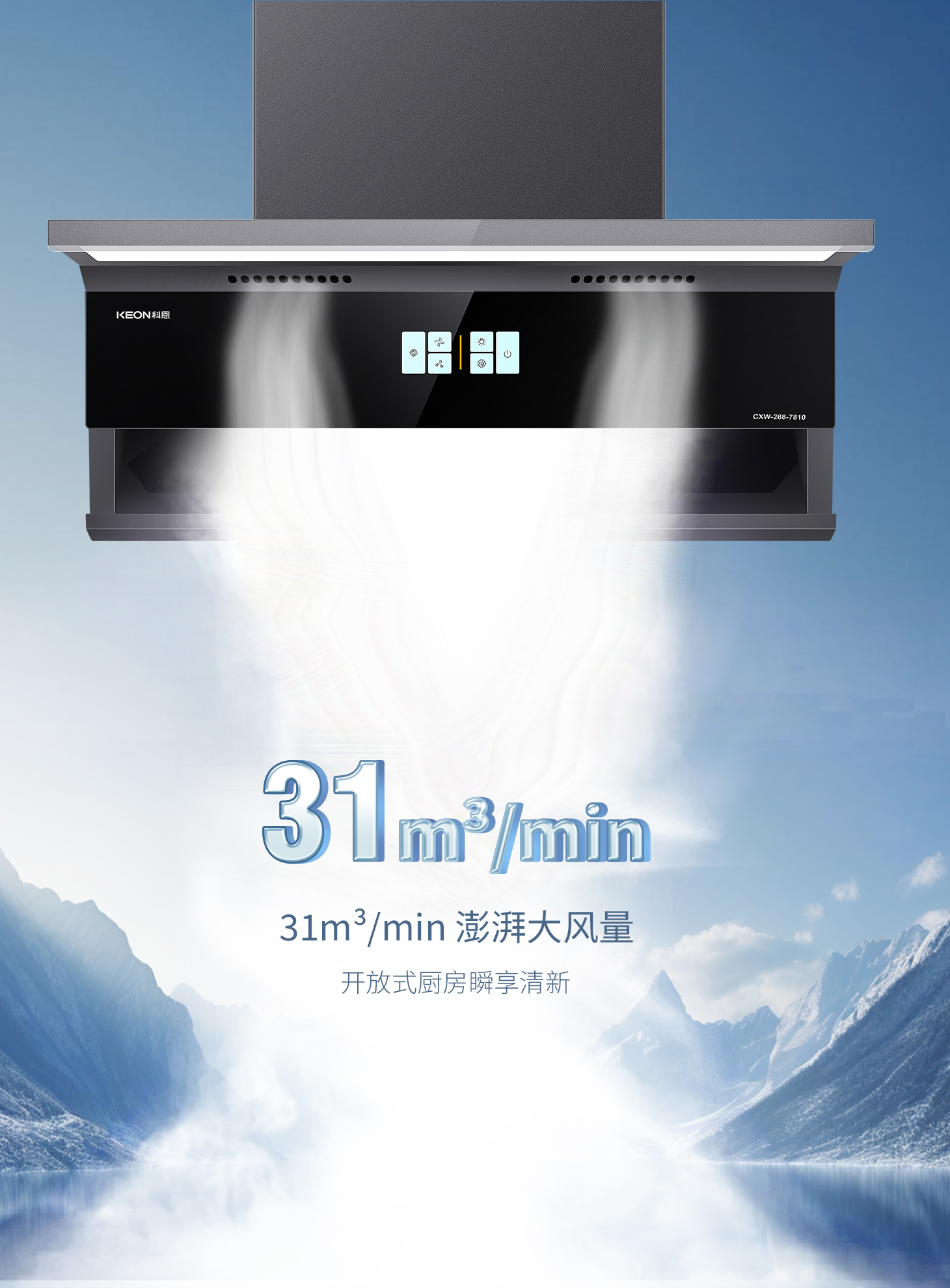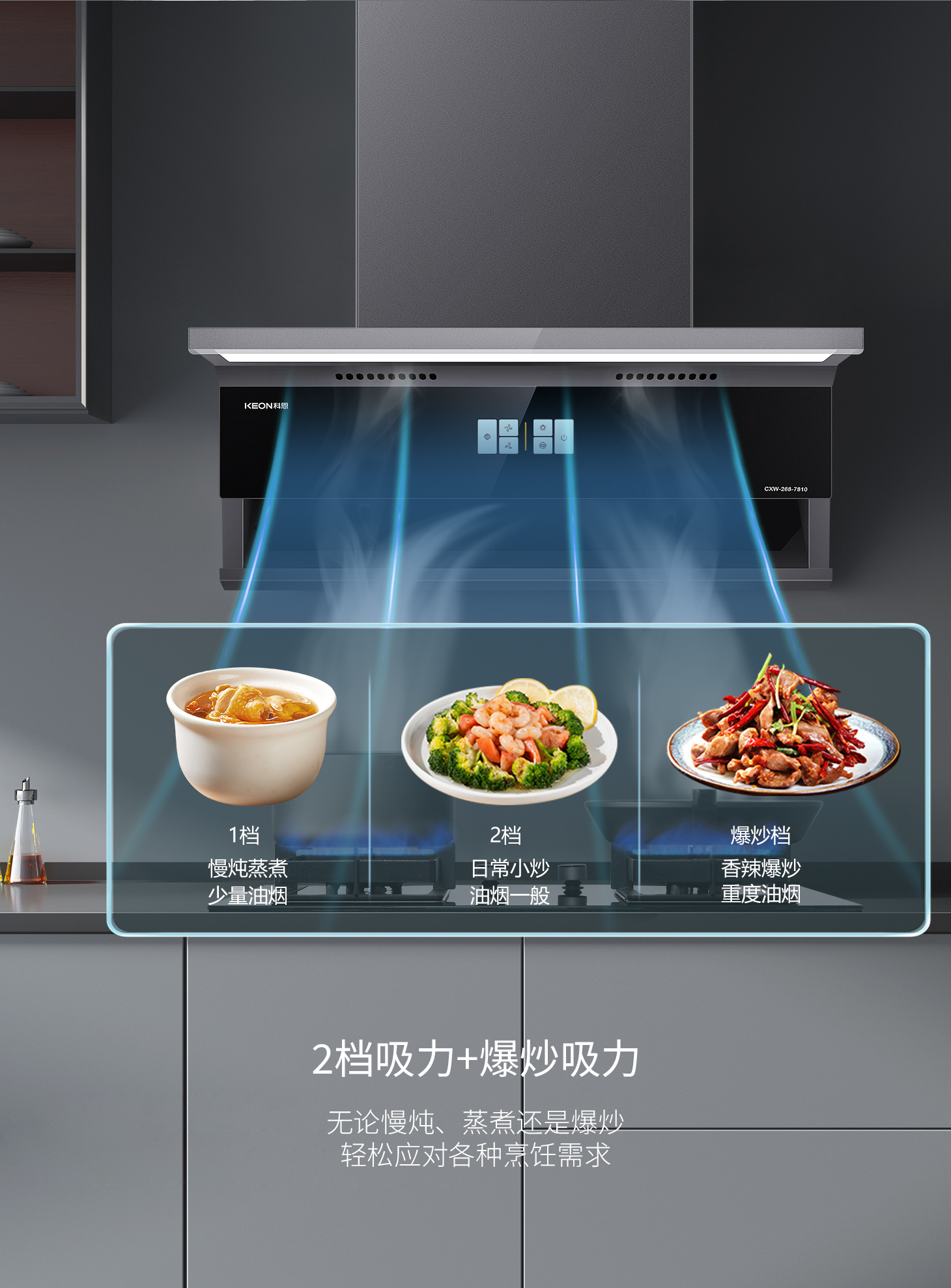 凈煙神速 顏值擔(dān)當(dāng)。新年爆炒,油煙無蹤,3秒清場,全域攏煙,1350Pa變頻風(fēng)壓,排煙順暢。2.5cm輕薄機(jī)身,冰川灰鑲邊,天鵝頸設(shè)計(jì),釋放開闊空間,揮手智控,凈煙不沾油污。易潔省心 健康相伴。特氟龍工藝,油污不粘。智旋清洗,吸力持久強(qiáng)勁。3分鐘延時(shí)關(guān)機(jī),余煙盡除,IP67全景天幕,護(hù)眼清晰,模塊化觸控,操作直觀簡單,0.5立方大空間,翻炒不碰頭。