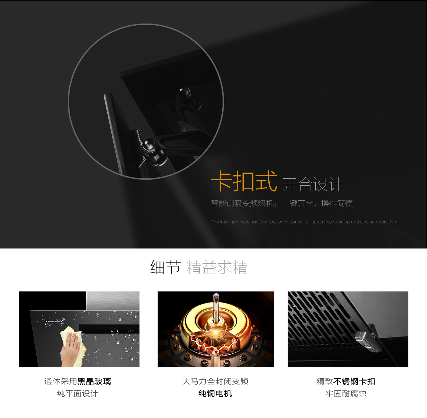 - 整機(jī)通體采用黑晶鋼化玻璃純平面設(shè)計(jì),質(zhì)顯內(nèi)斂。