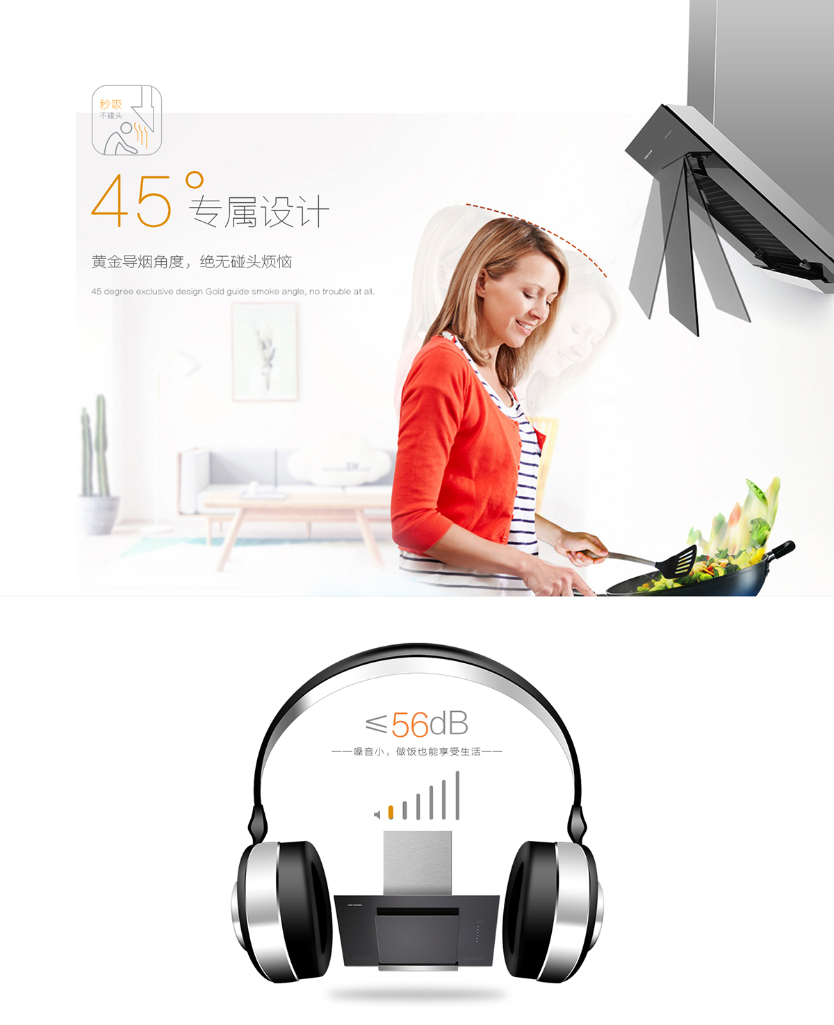 - 45°專屬設(shè)計(jì),黃金導(dǎo)煙角度,無(wú)碰頭煩惱。