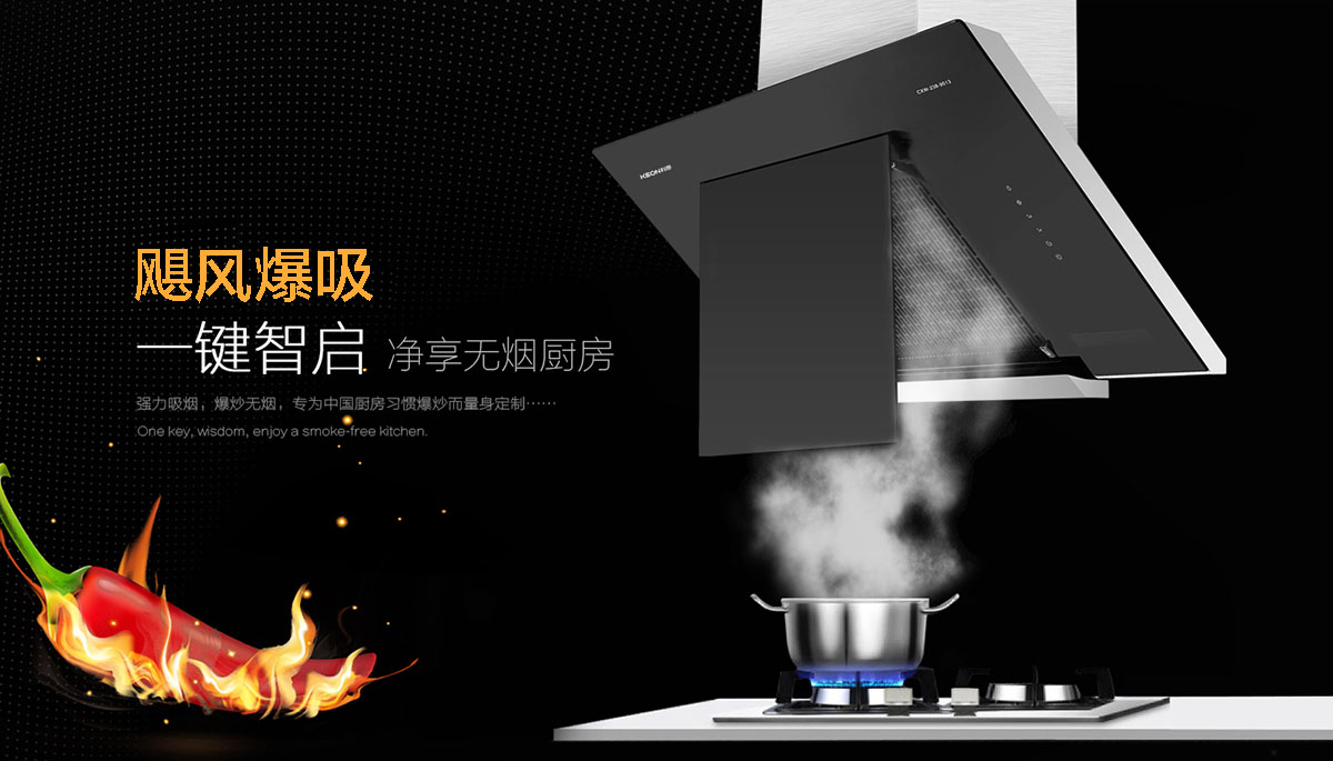 - 智能側(cè)吸變頻煙機(jī),解決公共煙道烹飪高峰排煙難的問(wèn)題。