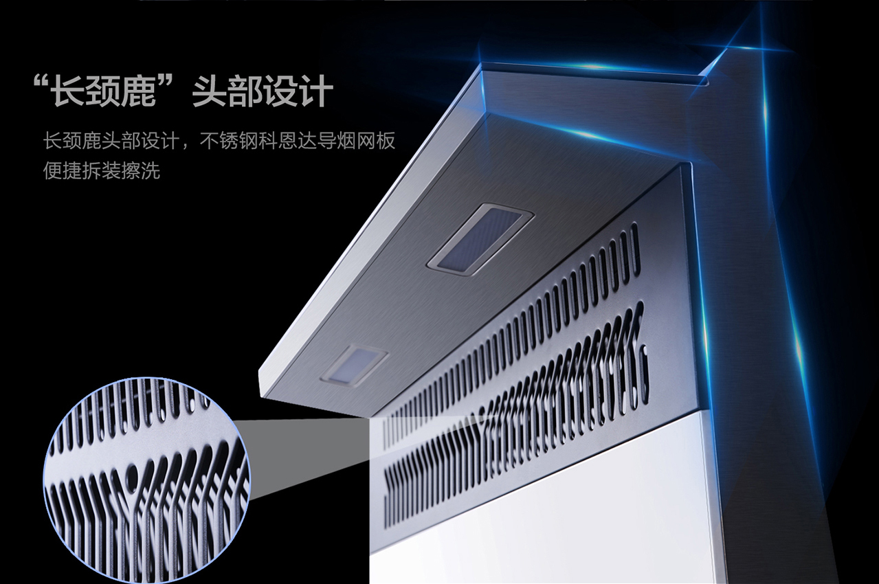 搭載可提拉式科恩達304不銹鋼導煙網板,拆卸方便。