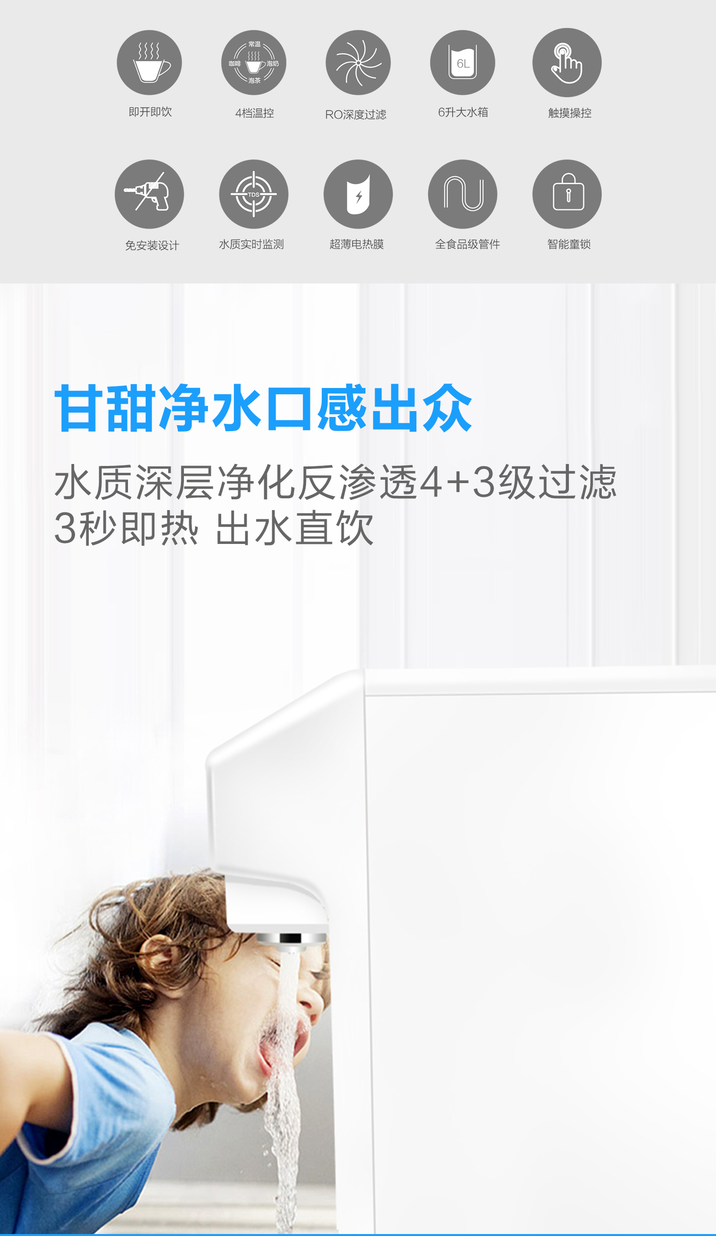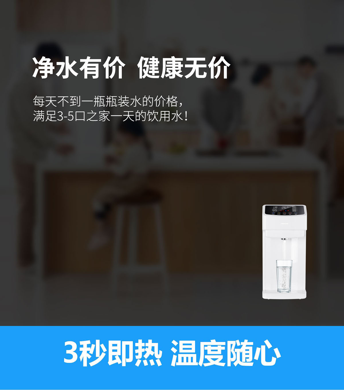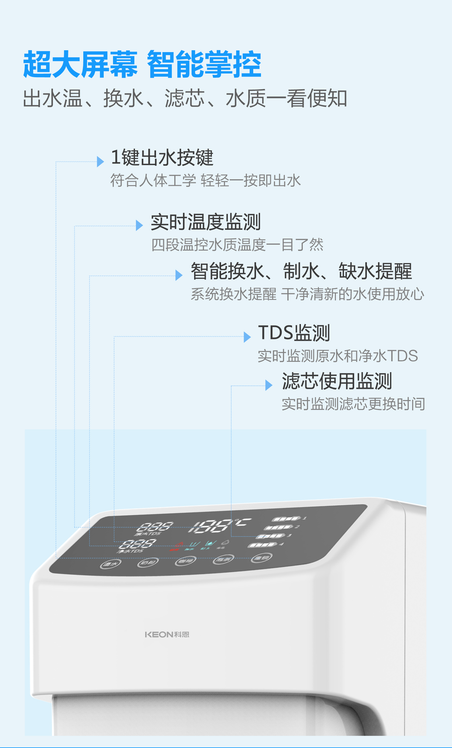 3秒速熱,4檔溫控(常溫、泡奶、沖咖啡、泡茶),一鍵操作,方便快捷
