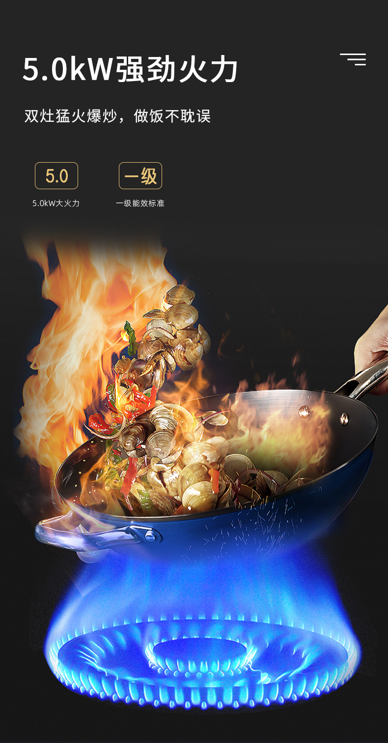 - 5.0kW強勁火力,雙灶猛火爆炒