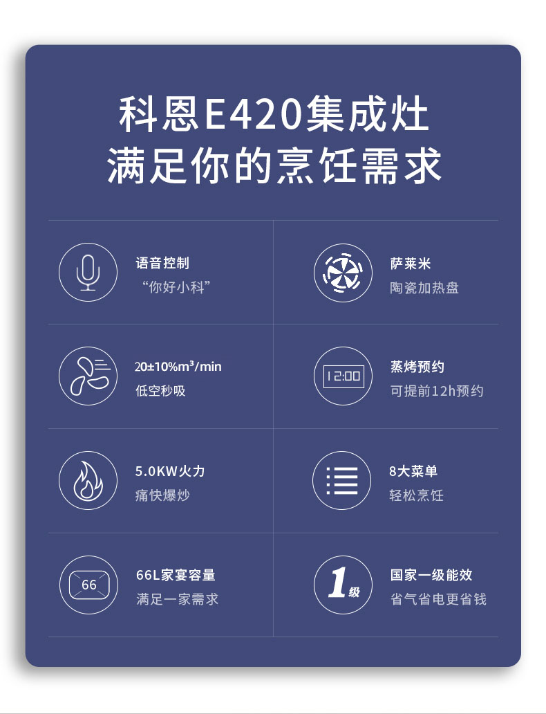 - 語音喚醒,智能鮮蒸,科恩E420智能語音集成灶