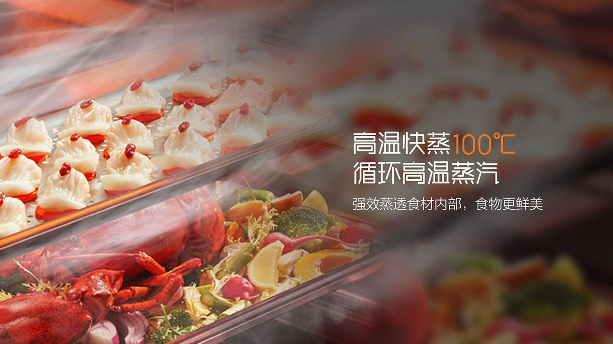 - 360°立體環噴技術,加速動態蒸汽內循環,食物鎖鮮更營養