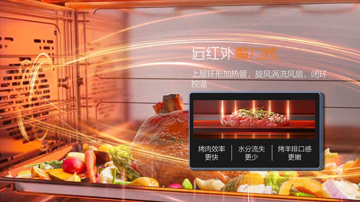 大容量蒸烤箱,120℃高溫快蒸,360〫立體炙烤