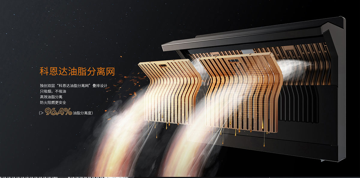 變頻電機大吸力,快勁吸煙源動力,遇強則強,無懼烹飪高峰