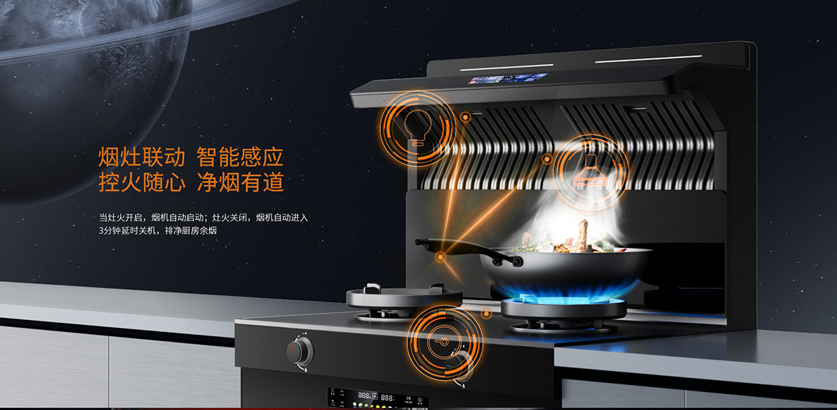 煙灶聯動,點火煙機及照明燈自動開啟;三分鐘延時,自動掃除殘留煙油