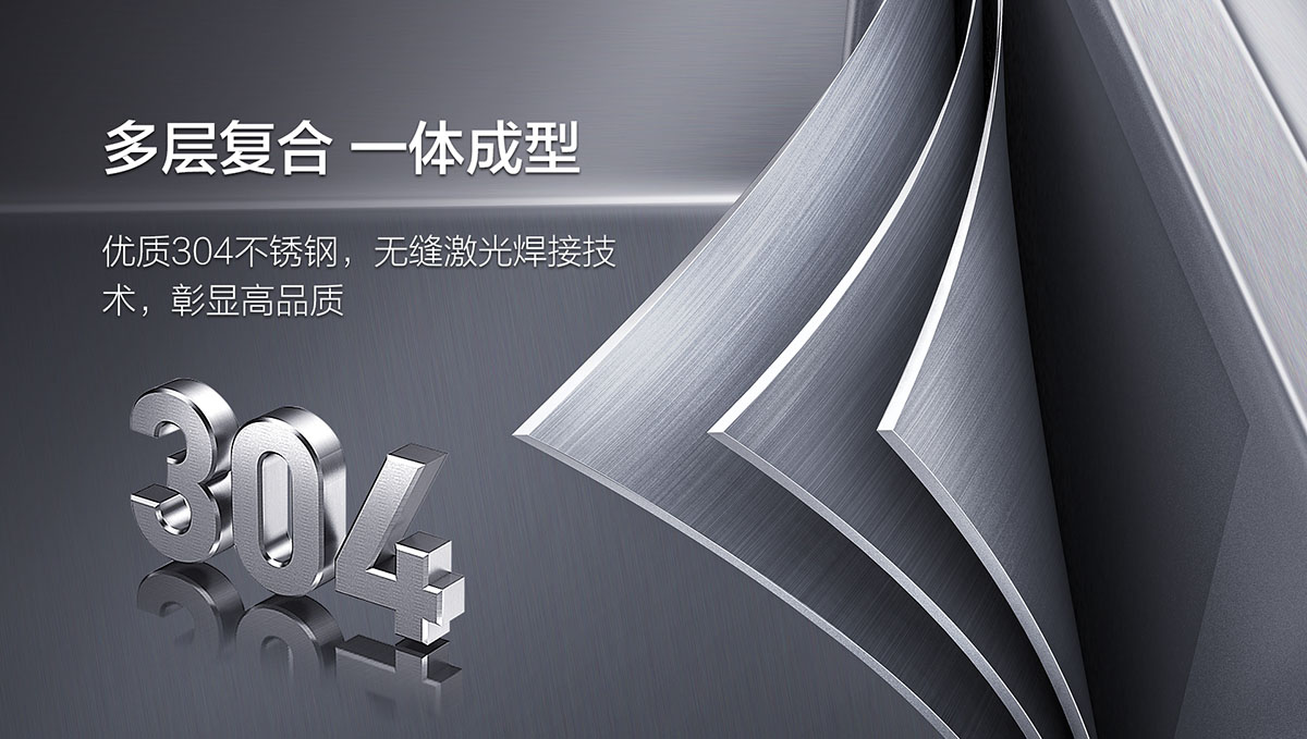 - 優(yōu)質(zhì)304不銹鋼,無(wú)縫激光焊接,多層復(fù)合 一體成型