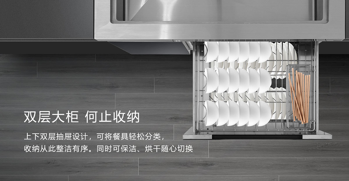 上下大雙層抽屜設計,餐具輕松分類,收納整潔有序