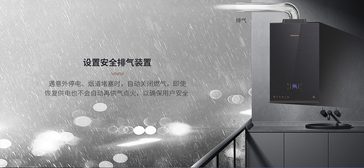 設置安全排⽓裝置,遇意外停電、煙道堵塞時,⾃動關閉燃⽓,即使恢復