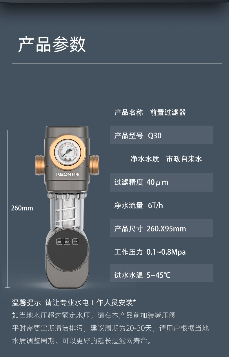 - 配精密水壓表,實時檢測進水水壓