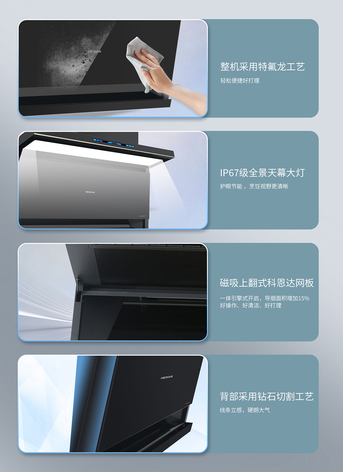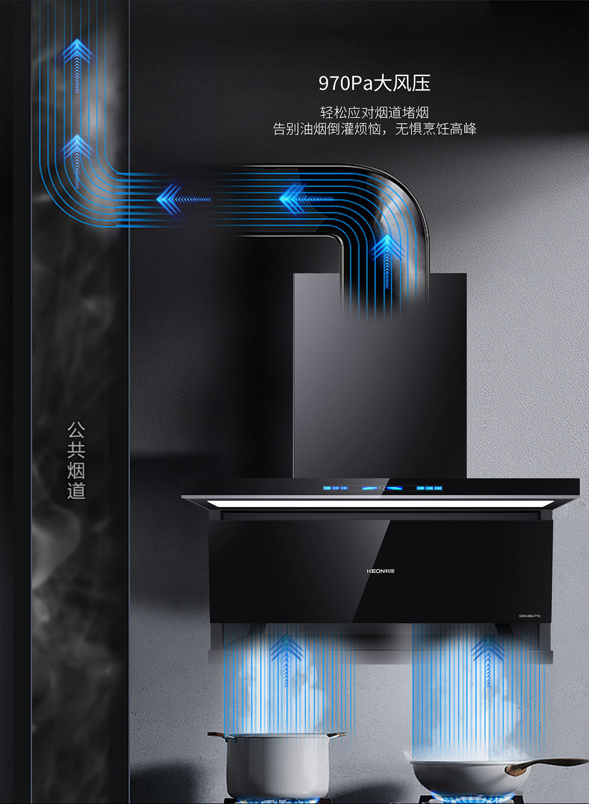 下吸上攏,頂側雙吸結構,油煙不逃逸