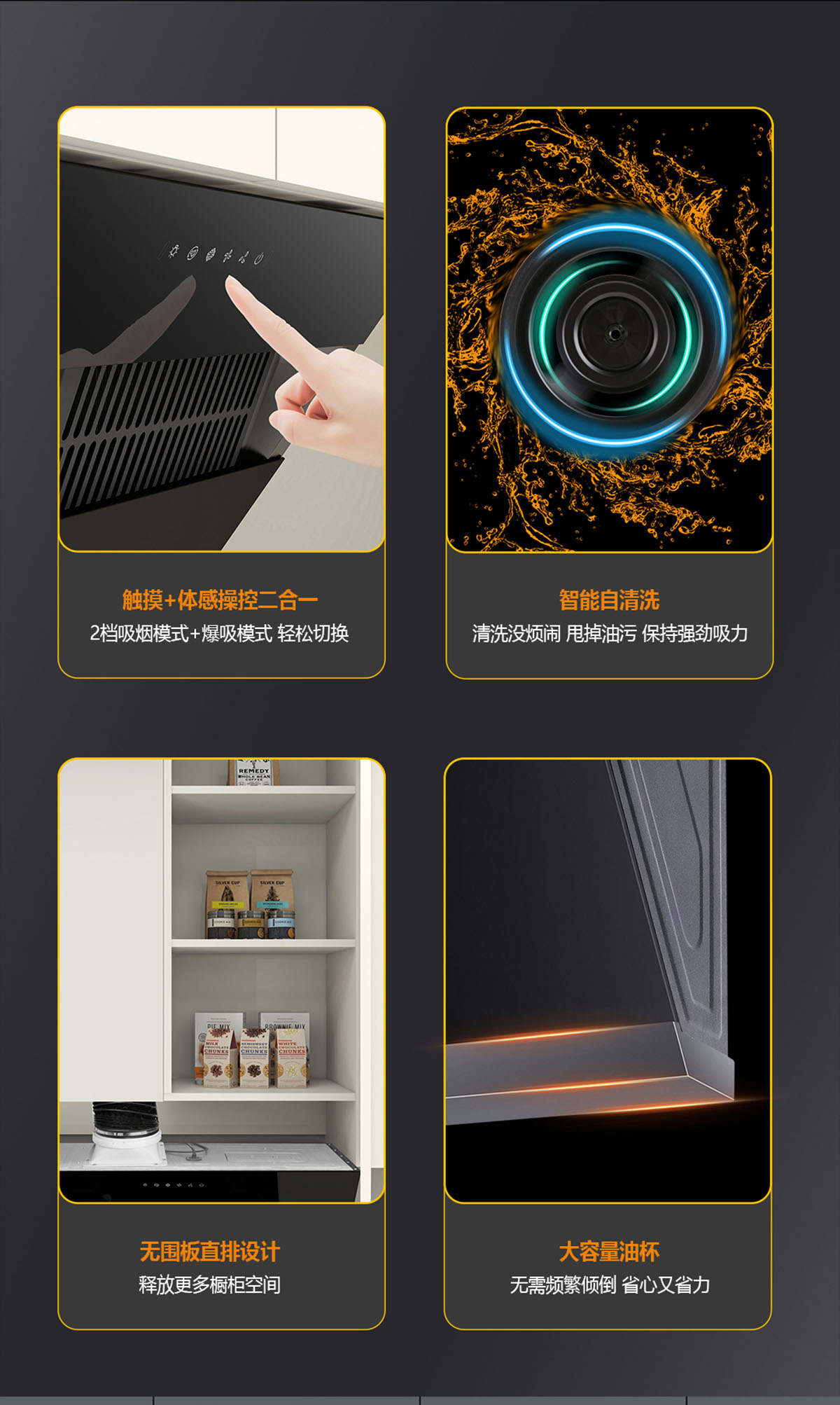 895MM寬屏攏煙,雙灶同烹,從容應對