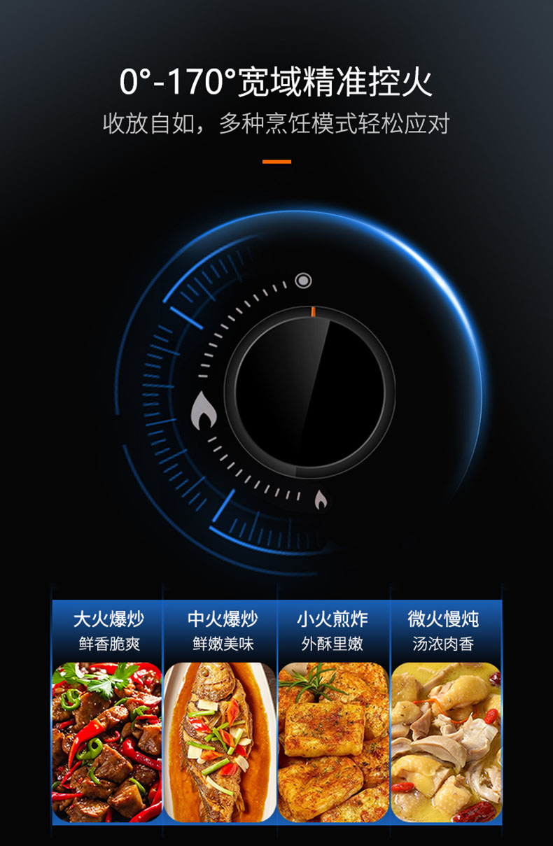 - 10.0°-170°寬域精準控火,收放自如