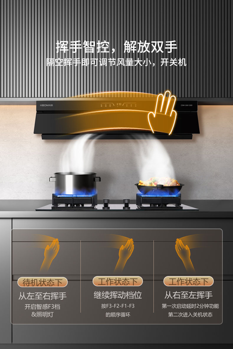 2min延時(shí)凈吸,徹底清除廚房?jī)?nèi)殘余油煙